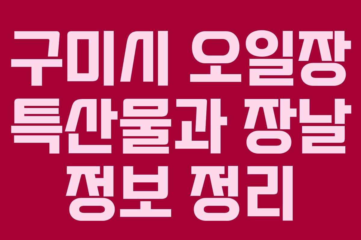 구미시는 경상북도에 위치하여 매력적인 오일장이 열리는 곳입니다. 지역 특산물과 장날 정보를 정리하여 방문 시 유용한 정보를 제공하겠습니다. 특히 2026년 기준으로 장날과 특산물 정보를 업데이트하였으니 참고하시기 바랍니다.