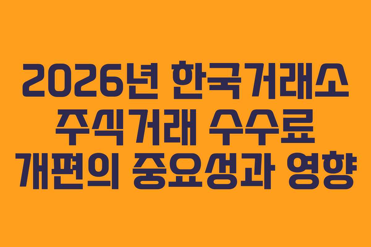 2026년 한국거래소의 수수료 체계 개편을 고려하여 아래와 같은 실전 가이드를 제시한다.
