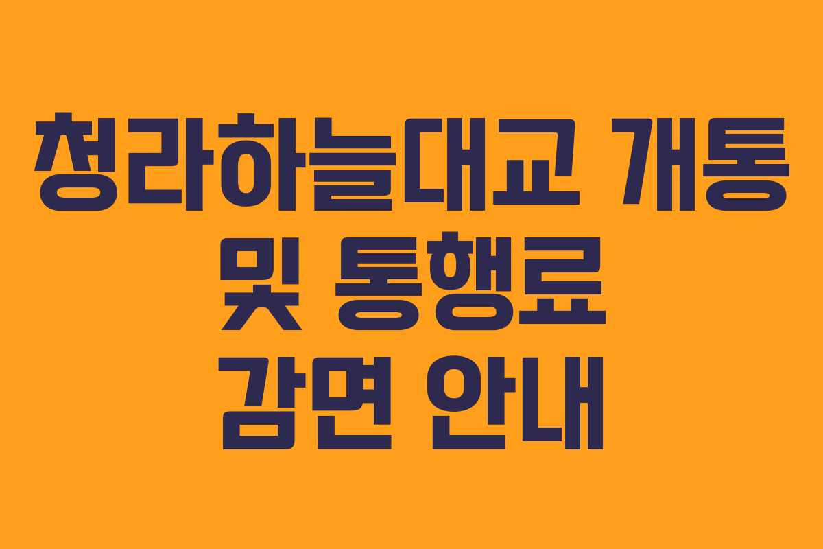 청라하늘대교의 통행료 감면은 중구, 영종, 서구, 청라·옹진군, 북도면의 지역 주민 차량에 해당합니다. 감면 규모는 청라하늘대교 영업소에서 무제한으로 감면되며, 감면 비율은 100%입니다. 그러나 법인 차량이나 단기(1년 미만) 렌트·리스 차량, 시스템에 등록되지 않은 차량은 감면에서 제외됩니다.