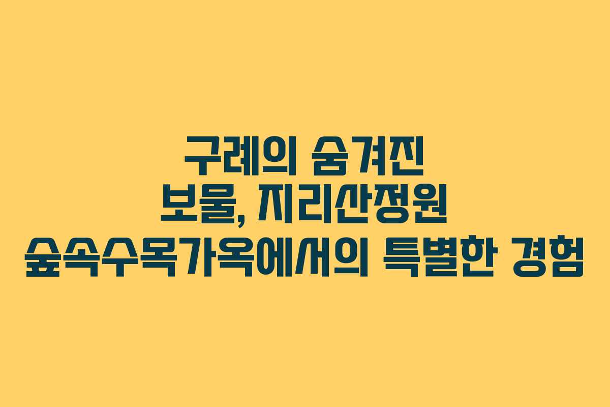 구례의 아름다운 자연 속에서 힐링을 찾고 싶다면 지리산정원 숲속수목가옥이 제격이다. 이 곳은 다양한 식물과 함께하는 특별한 경험이 가능하다. 최근의 방문에서 느낀 점들을 바탕으로, 이곳의 매력과 예약 방법, 시설에 대해 자세히 알아보자.
