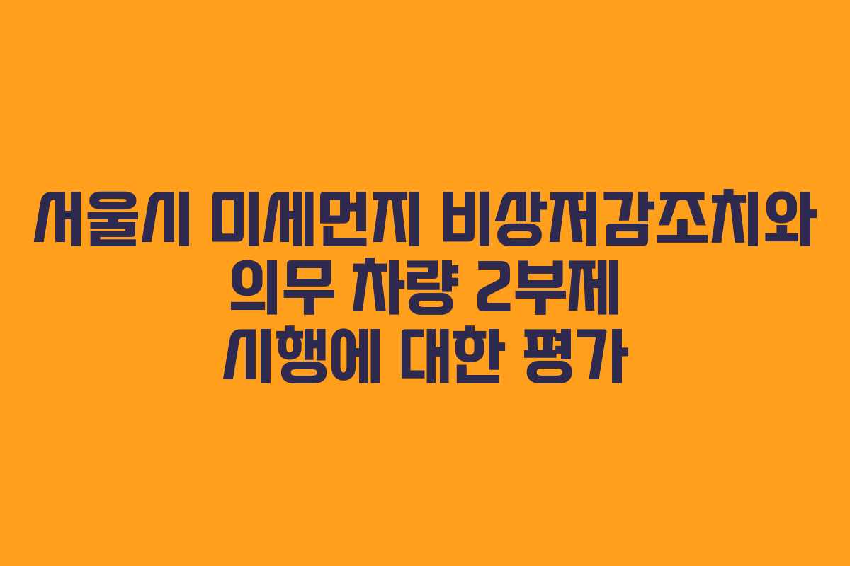 서울시는 최근 3일 이상 미세먼지 비상저감조치가 발령되었을 때 의무 차량 2부제를 시행할 계획에 대해 논의하고 있습니다. 이 정책은 고농도 미세먼지 문제를 해결하기 위한 방안으로, 대기질 개선을 목표로 하고 있습니다. 그러나 이와 관련한 다양한 의견이 존재하며, 시민들의 목소리를 반영한 정책 추진이 필요합니다.