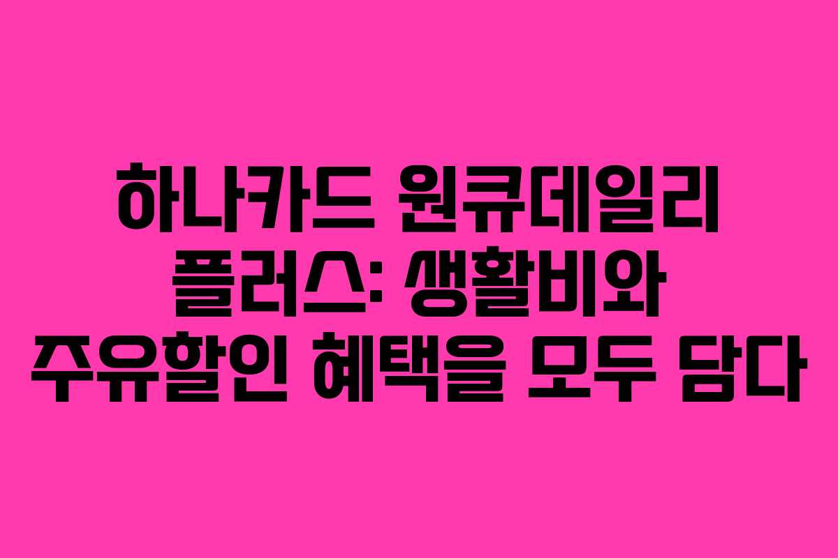 하나카드 원큐데일리 플러스는 다양한 생활비 절감 혜택과 주유할인, 공과금 적립으로 주목받고 있는 신용카드입니다. 이 카드는 일상에서 발생하는 여러 지출을 줄이는 데 큰 도움을 줄 수 있는 점이 특징입니다. 특히, 기본 적립 외에도 특정 조건을 충족하면 추가 혜택을 제공하는 것이 매력적입니다.