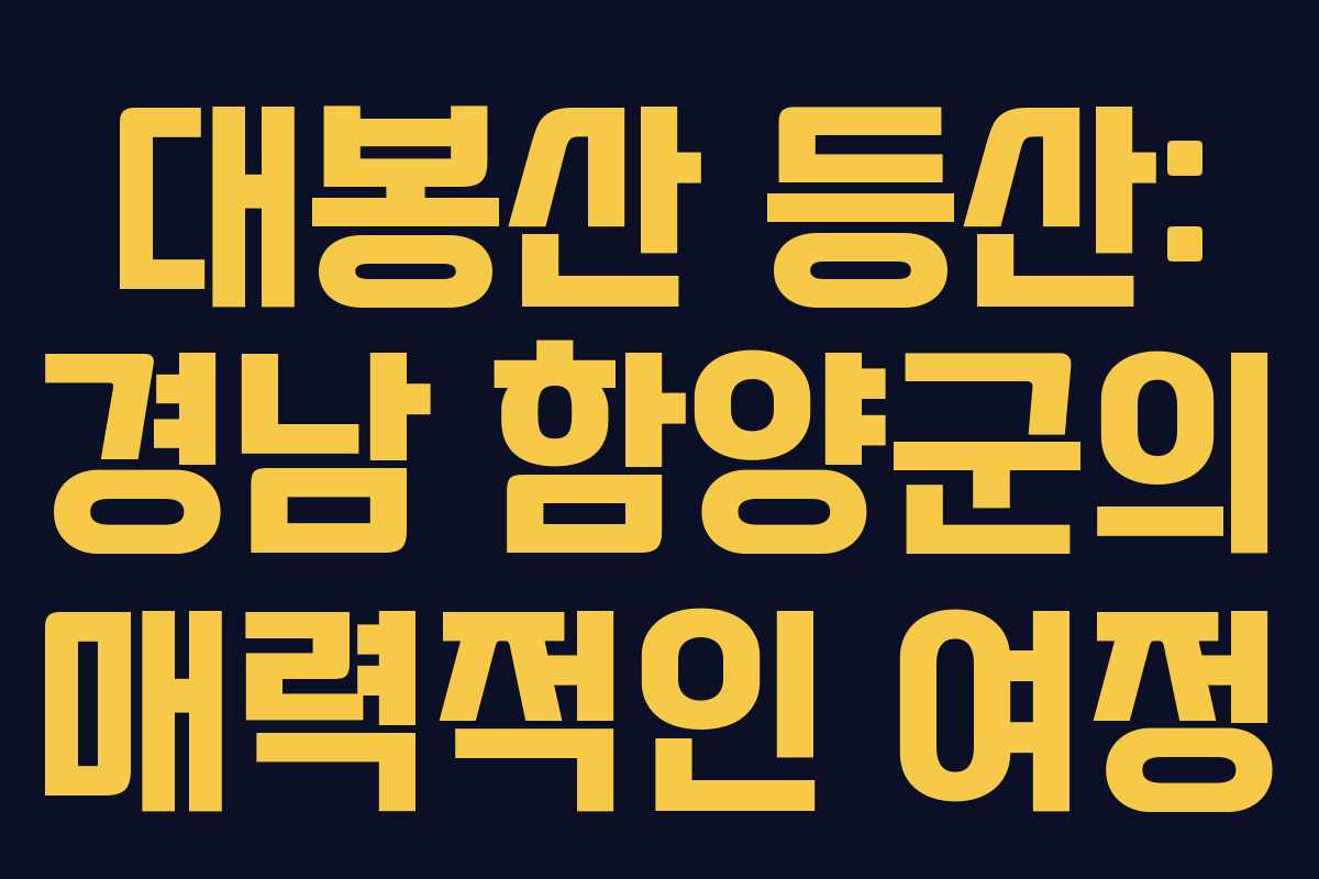대봉산은 경남 함양군의 대표적인 등산지로, 그 아름다움과 도전적인 코스 덕분에 많은 이들이 찾습니다. 2026년 현재, 등산을 계획하는 이들은 위의 정보를 참고하여 보다 안전하고 즐거운 경험을 쌓기 바랍니다. 대봉산에서의 경험은 여러분의 기억 속에 오랫동안 남을 것입니다.