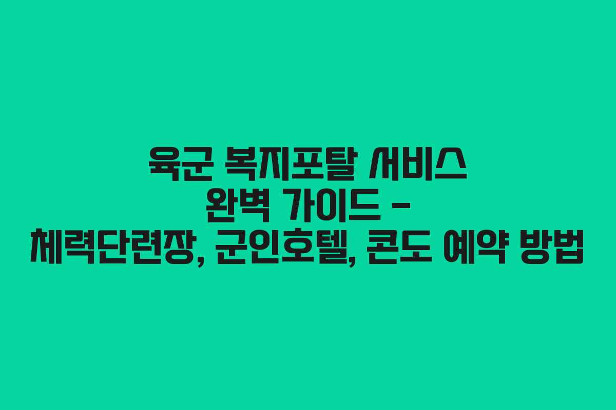 육군 복지포탈 서비스 완벽 가이드 - 체력단련장, 군인호텔, 콘도 예약 방법