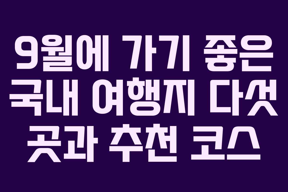 9월은 여름의 무더위가 지나가고 가을의 상쾌한 바람이 불어오는 시기입니다. 이 시점에서 여행을 떠나기 위한 최적의 날씨가 찾아옵니다. 아름다운 풍경과 다채로운 즐길 거리로 가득한 9월에 방문하기 좋은 국내 여행지 다섯 곳을 소개합니다. 이와 함께 각 지역의 추천 여행 코스도 함께 안내드립니다.