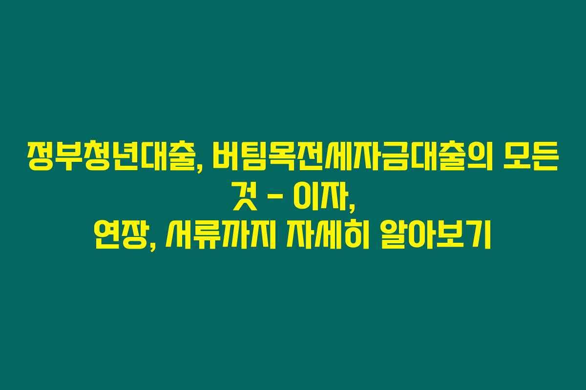정부청년대출, 버팀목전세자금대출의 모든 것 – 이자, 연장, 서류까지 자세히 알아보기