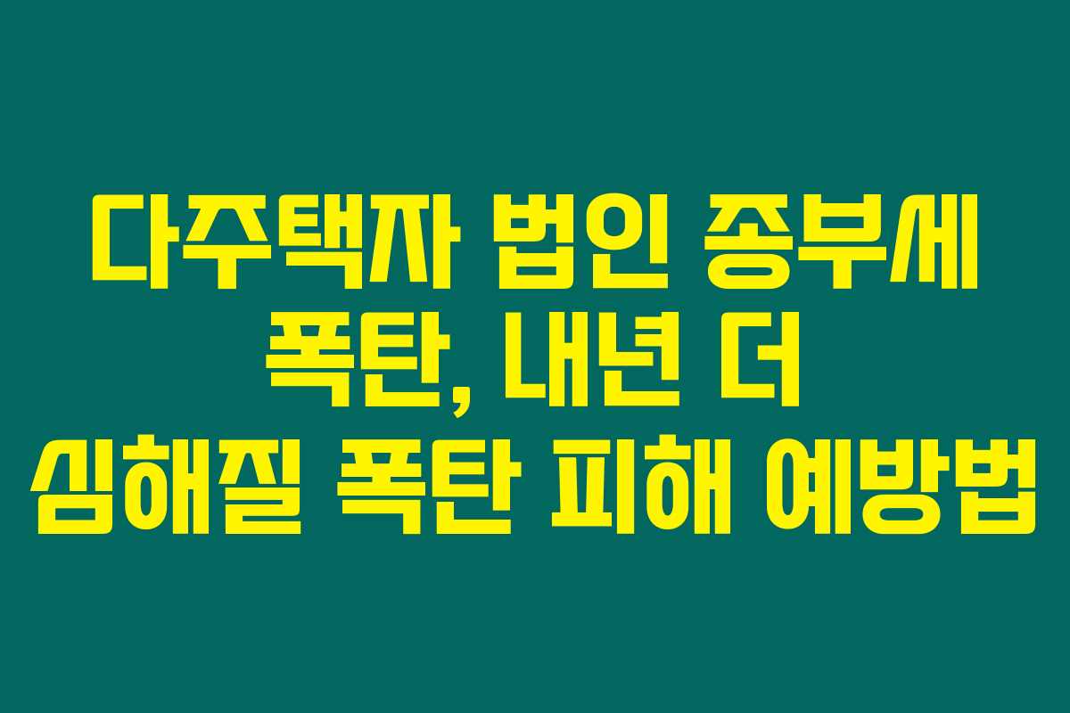 제가 알아본 바로는, 다주택자와 법인이 부담하는 종합부동산세가 갈수록 증가하고 있어 많은 분들이 놀라고 있습니다. 실제로 최근 고지서를 받고 몇백, 몇천, 심지어 억 단위의 세금을 부과받은 경우도 있었죠. 아래를 읽어보시면 이 문제의 깊이와 세금을 절약할 수 있는 방법을 알게 되실 거예요.