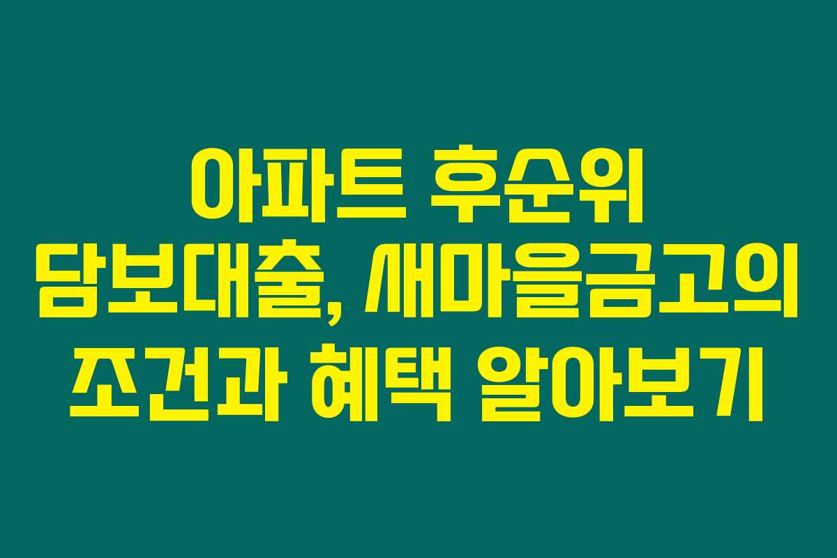 아파트 후순위 담보대출, 새마을금고의 조건과 혜택 알아보기