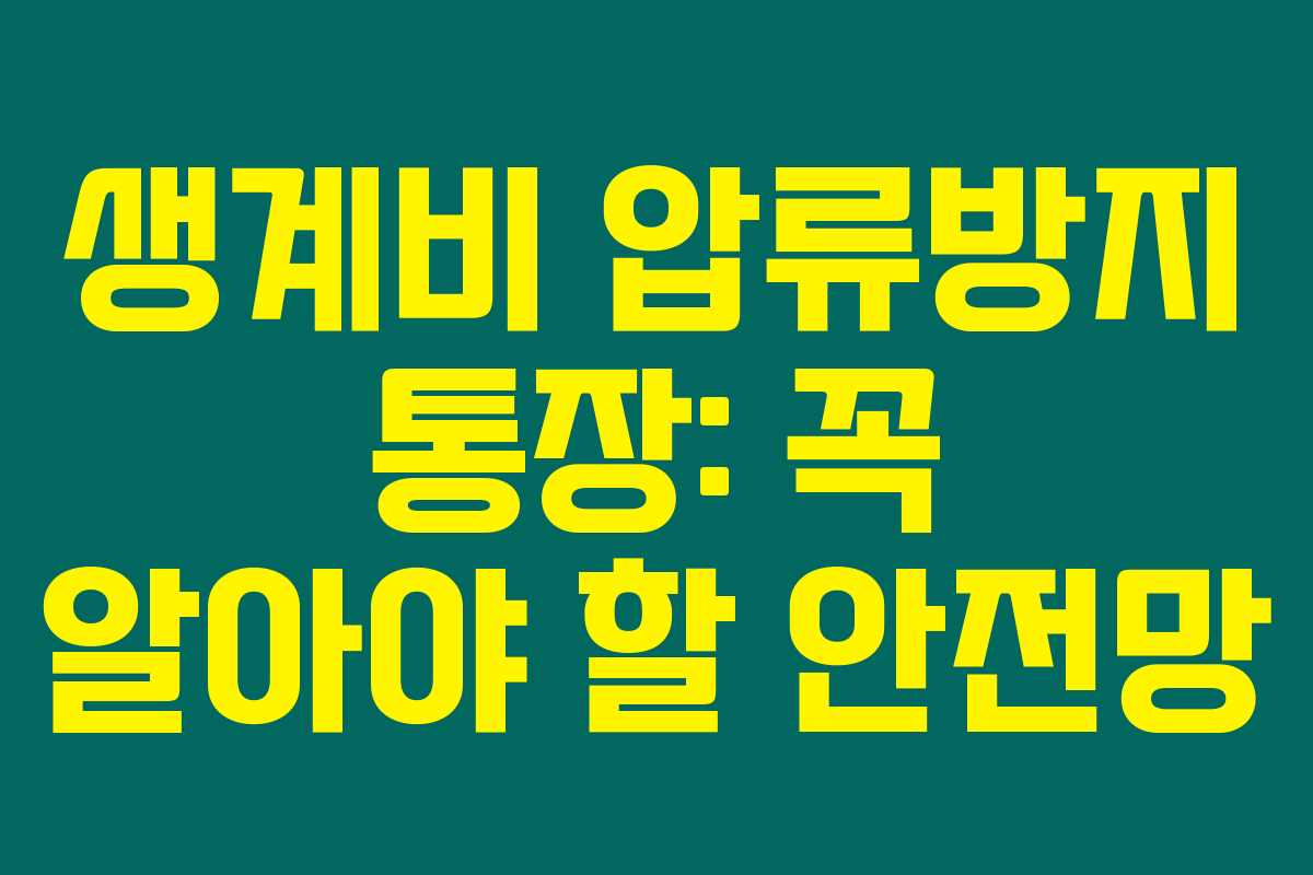 생계비 압류방지 통장: 꼭 알아야 할 안전망