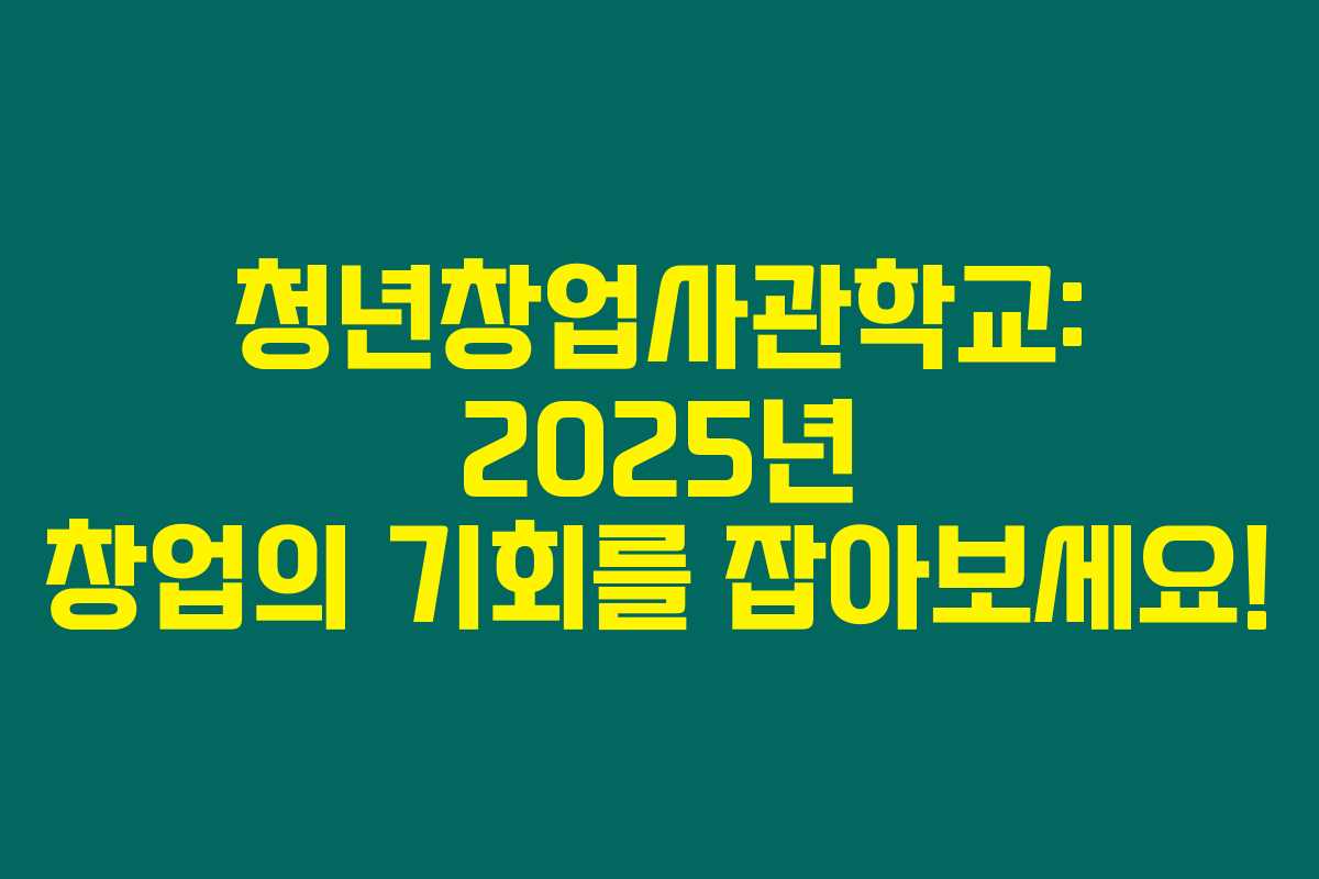 청년창업사관학교: 2025년 창업의 기회를 잡아보세요!