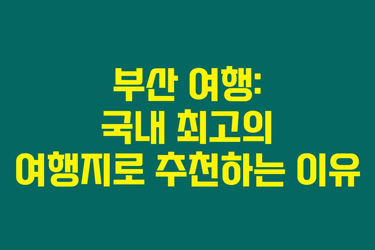 부산 여행: 국내 최고의 여행지로 추천하는 이유