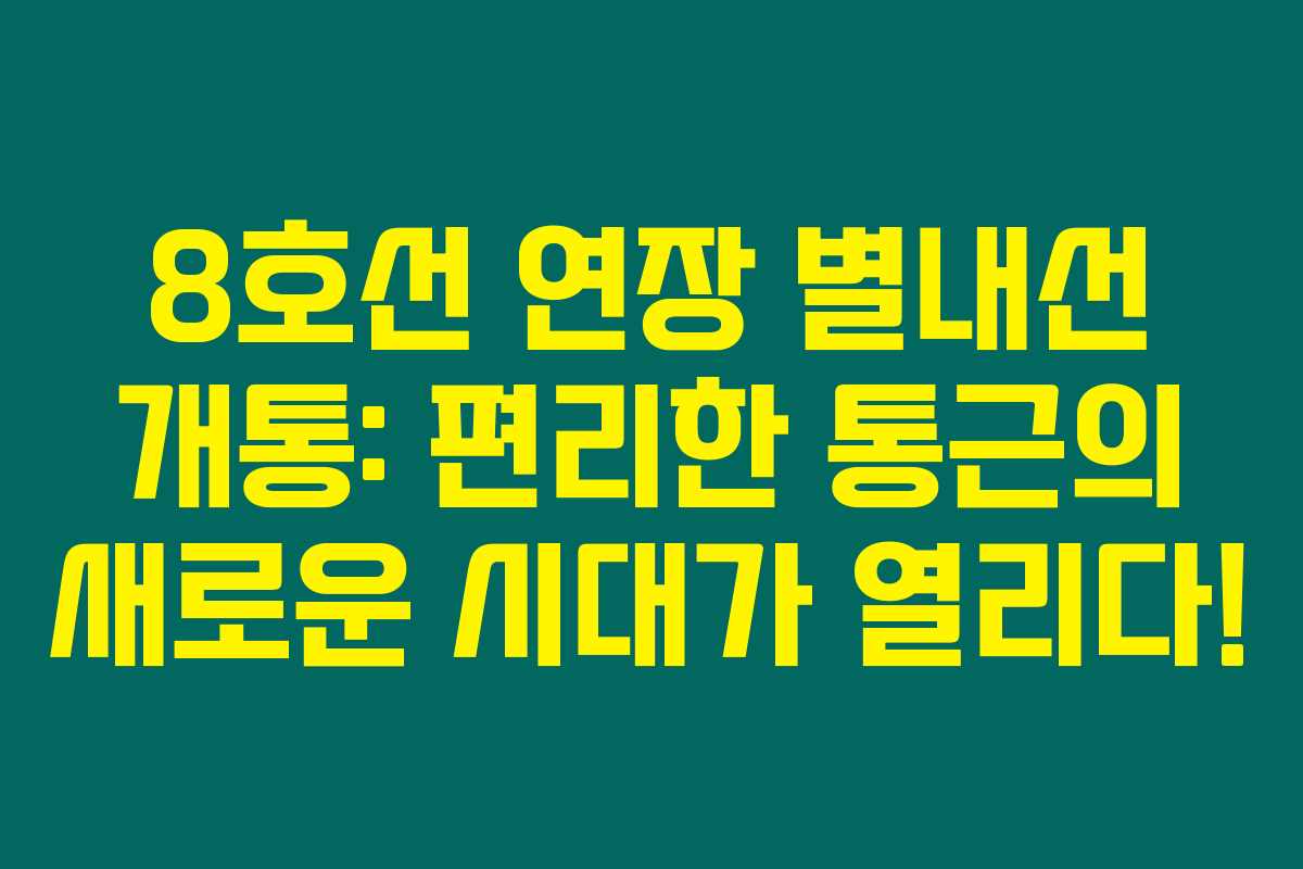 제가 알아본 바로는, 8호선 연장인 별내선이 드디어 2024년 8월 10일에 개통되면서 많은 사람들이 일상생활에서 큰 변화를 느낄 것으로 보입니다. 이 글에서는 별내선의 노선도와 운행 시간표, 그리고 주변 아파트에 미치는 영향을 자세히 살펴보겠습니다. 아래를 읽어보시면, 많은 정보와 혜택을 한눈에 확인하실 수 있습니다.