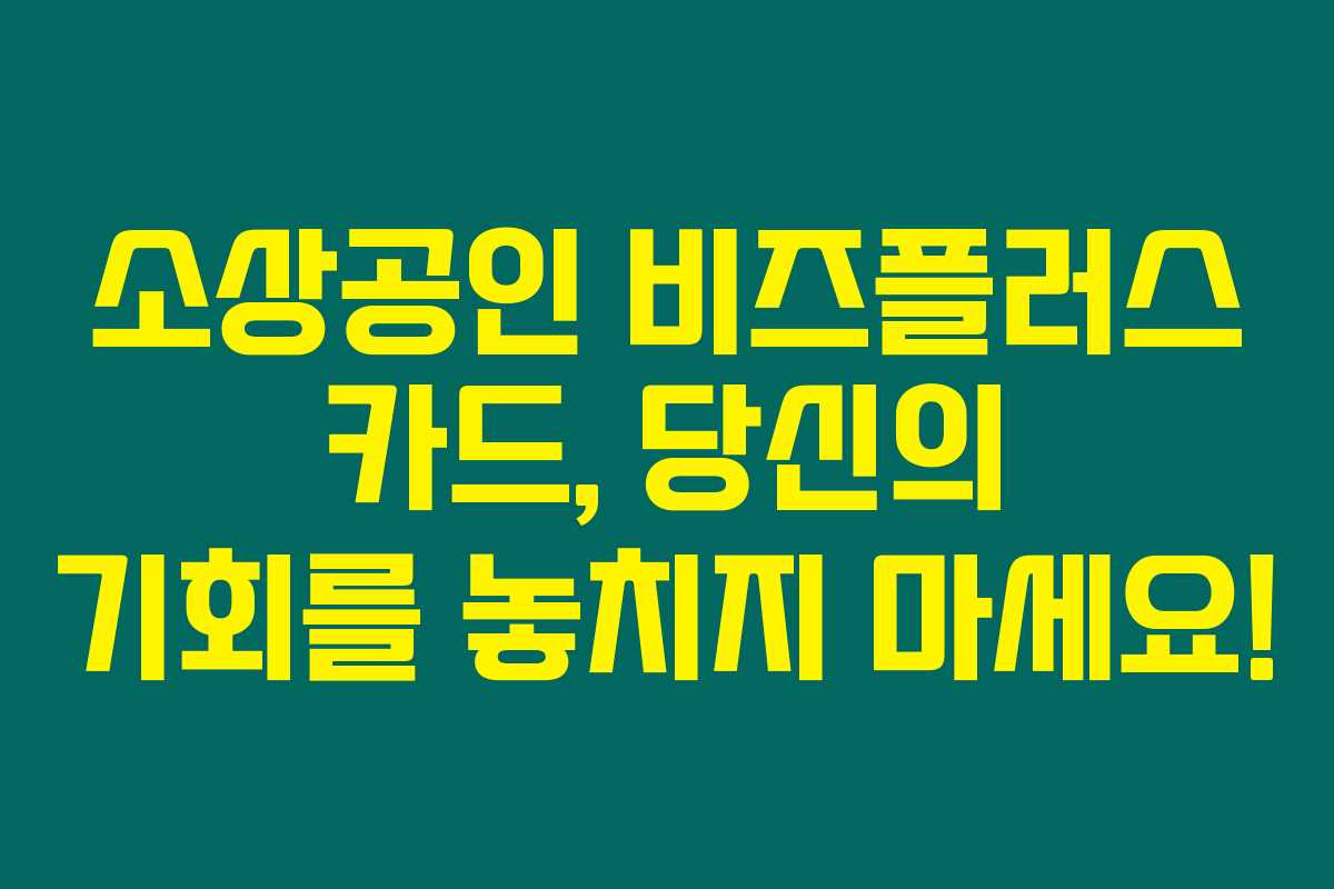 소상공인 비즈플러스 카드는 단순한 금융 상품이 아니라 자금 압박을 겪고 있는 중저신용 소상공인들에게 최적의 해결책이라 할 수 있습니다. 무이자 혜택과 신용도 보호 덕분에 자금 걱정 없이 사업을 운영해 나갈 수 있는 기회를 제공합니다. 향후 정부의 추가 발표에 주의를 기울이며, 필요한 서류를 미리 준비하신다면 소중한 혜택을 놓치지 않으실 수 있을 것입니다. 지금 소상공인들을 위한 기회가 이만큼 풍성하니, 절대로 놓치지 마세요!