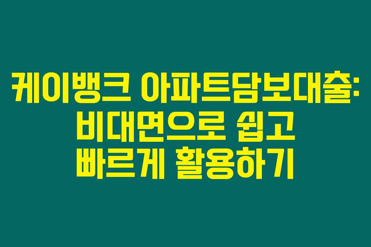 제가 경험해본 결과, 케이뱅크 아파트담보대출은 비대면으로 간편하게 신청할 수 있어 매우 매력적이었어요.