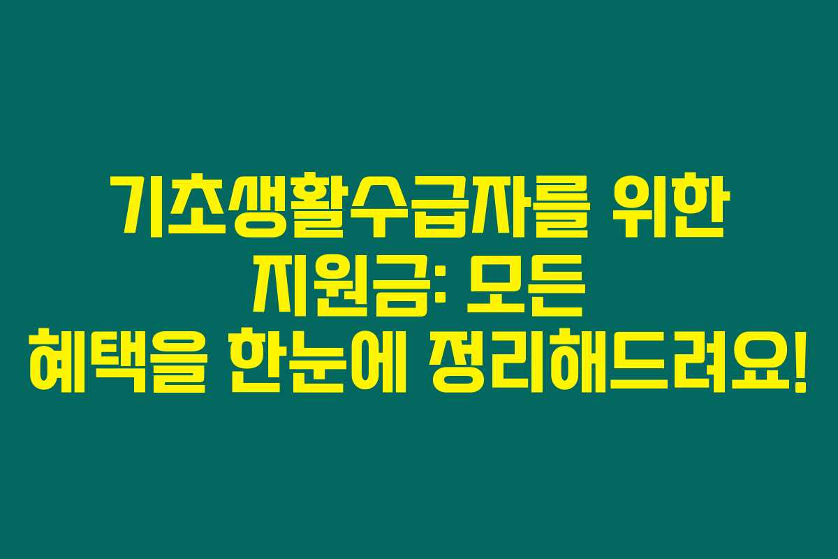 기초생활수급자를 위한 지원금: 모든 혜택을 한눈에 정리해드려요!