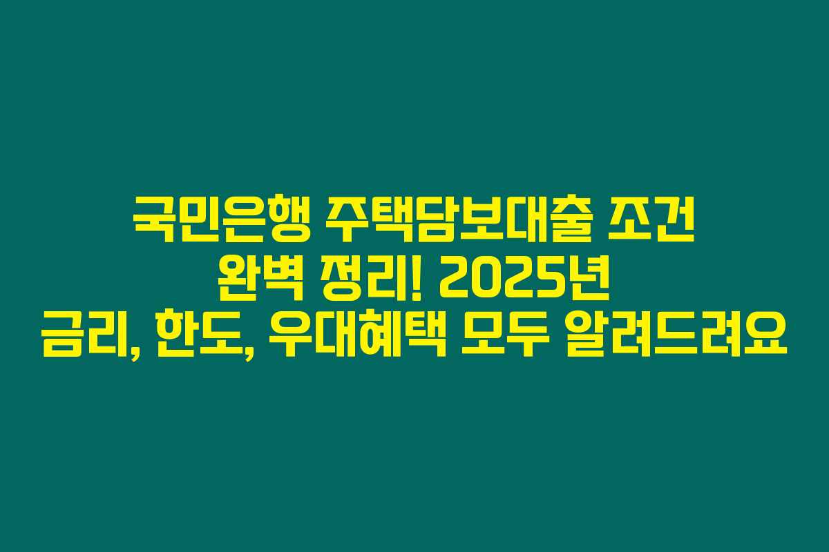 제가 알아본 바로는, 국민은행의 주택담보대출은 집을 담보로 대출을 고민하는 분들에게 가장 먼저 떠오르는 옵션 중 하나에요. 하지만 금리, 한도와 우대혜택 등 다양한 조건이 있어서 선택하기 어려운 분들이 많죠. 아래를 읽어보시면 2025년의 최신 정보를 바탕으로 주택담보대출의 모든 조건을 쉽게 알 수 있도록 정리했어요.