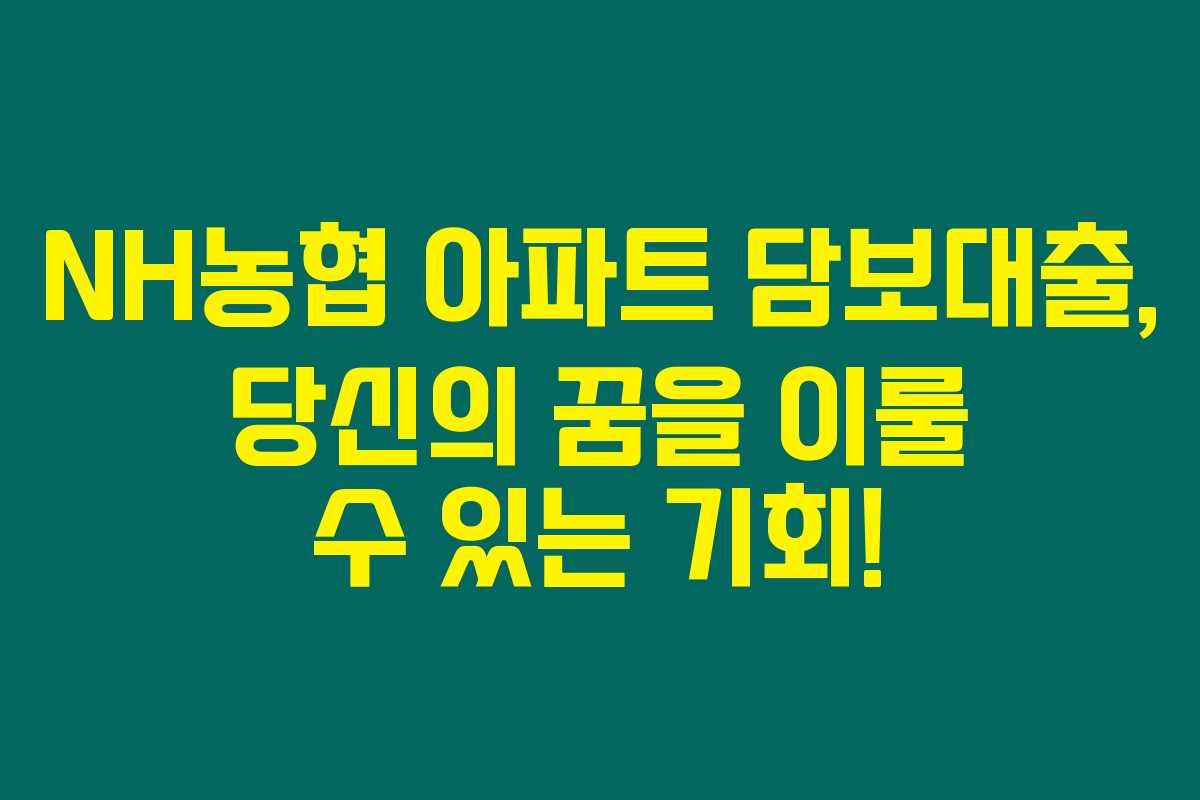 NH농협 아파트 담보대출, 당신의 꿈을 이룰 수 있는 기회!