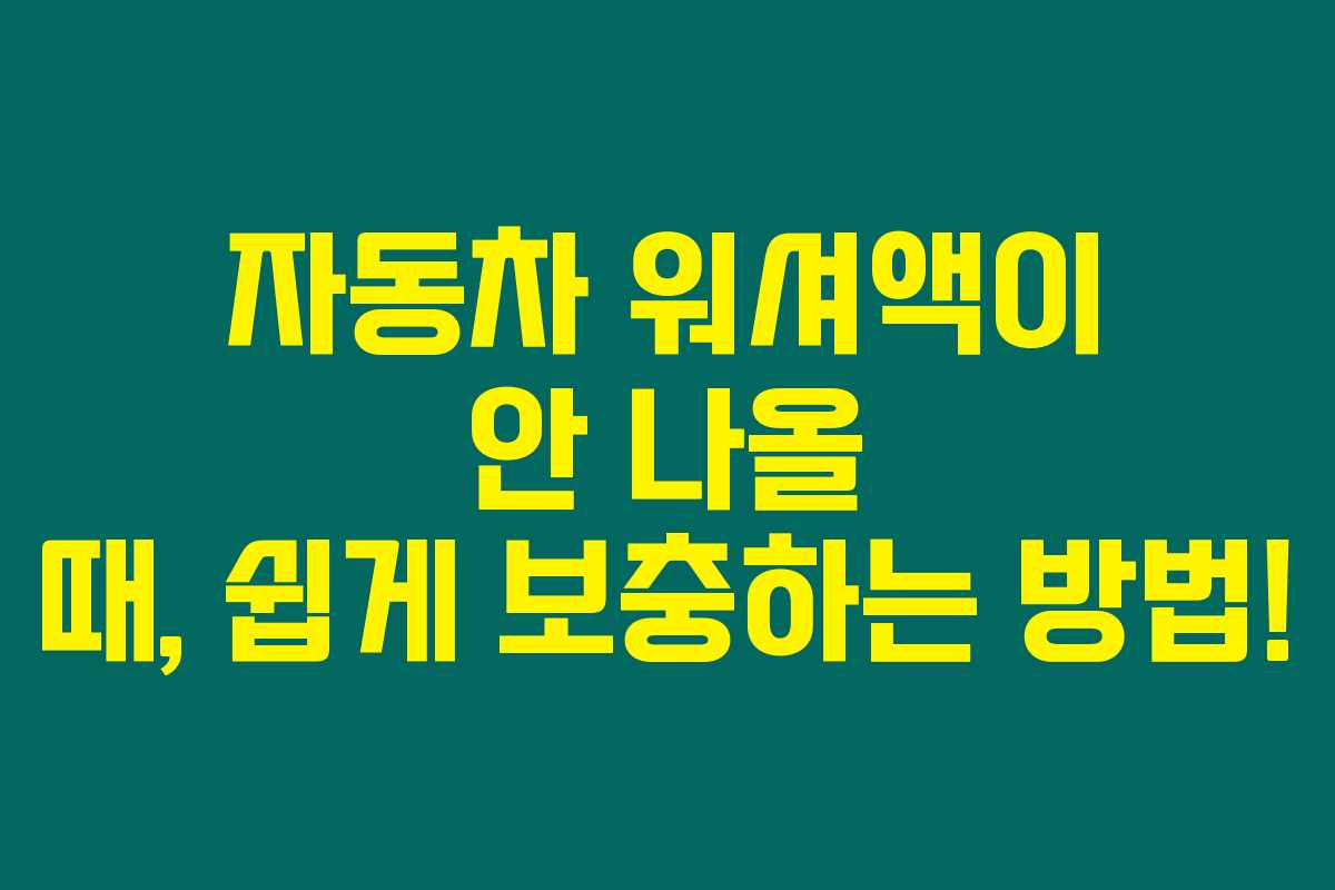 제가 알아본 바로는, 자동차 운전 중 워셔액이 안 나오는 경험은 정말 당황스러운 일이에요. 며칠 전, 제가 운전을 하다 워셔액을 분사했는데, 처음엔 조금 나오다 그 뒤로는 아예 나오지 않더라구요. 차량 경고등도 뜨지 않아 더 이상한 상황이었어요. 그래서 저는 직접 워셔액을 보충해보려고 했고, 그 과정에서 알게 된 정보들을 공유하려고 해요. 아래를 읽어보시면, 자동차 워셔액 보충 방법과 워셔액이 안 나오는 이유를 잘 이해하실 수 있을 거예요.