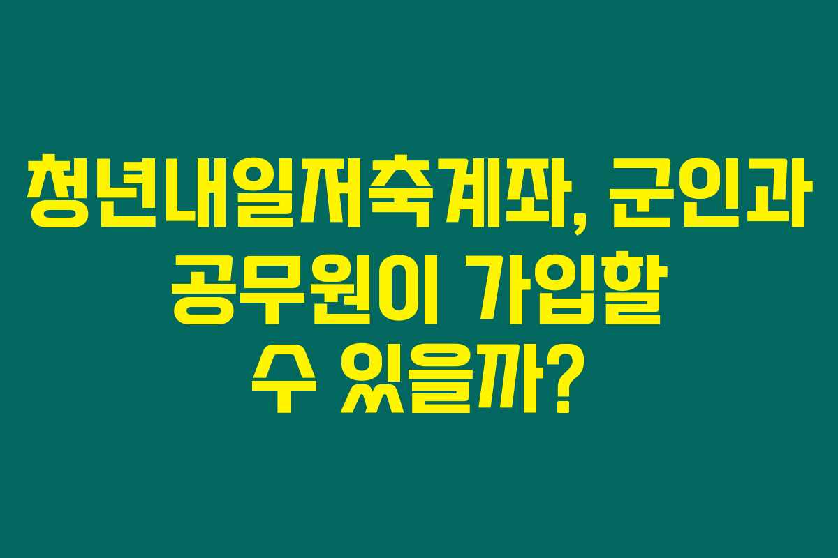 제가 직접 리서치한 바로는 청년내일저축계좌는 소득이 낮은 청년들이 장기적 자산 형성을 도와주기 위해 마련된 금융 상품이에요. 그런데 군인이나 공무원도 이 계좌에 가입할 수 있는지 궁금하신 분들이 많더라고요. 아래를 읽어보시면 해당 계좌에 대해 자세히 알아보실 수 있을 거예요.
