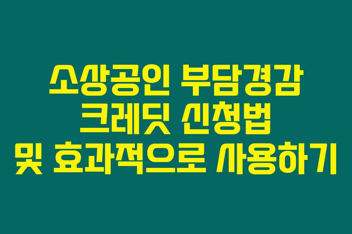 이번 소상공인 부담경감 크레딧 지원사업은 소상공인 여러분의 경영 부담을 덜어줄 수 있는 좋은 기회입니다. 각 조건과 신청 방법에 맞춰 꼭 신청하시고, 이 기회를 잘 활용해보시길 바랍니다!
