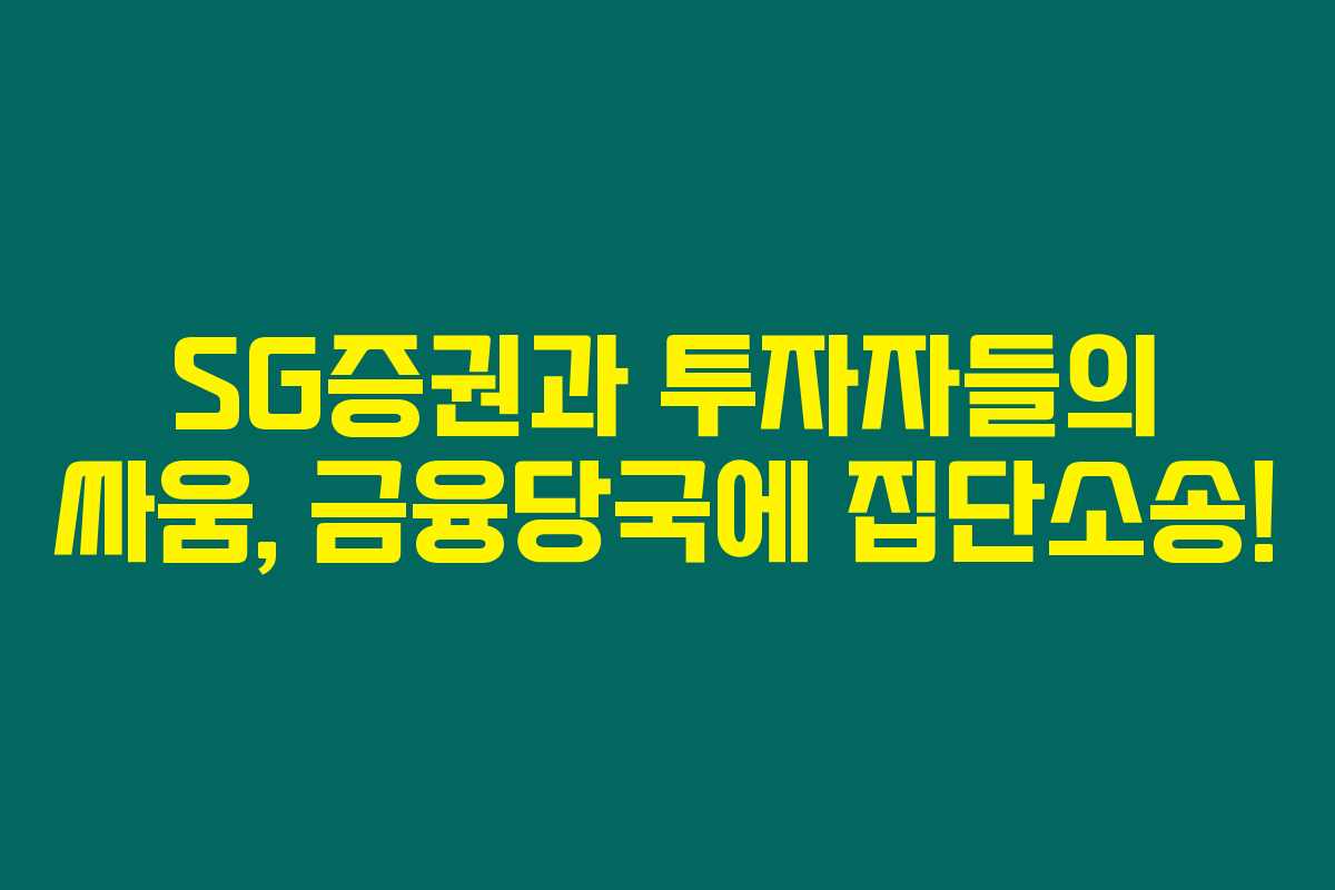 제가 직접 경험해본 결과로는, SG증권은 최근 투자자들에게 심각한 피해를 주었다고 해요. 외국계 증권사인 SG증권을 통해 발생한 주가 급락 사건 덕분에 많은 투자자들이 막대한 손실을 입었고, 이로 인해 금융당국을 상대로 집단소송이 진행되고 있습니다. 아래를 읽어보시면 이번 사건의 전말과 의미를 자세히 알 수 있을 거에요.