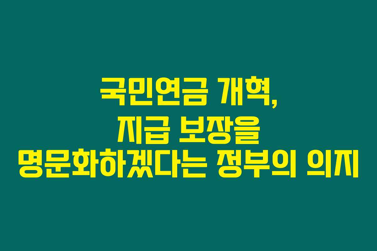 제가 알아본 바로는, 현재 국민연금이 고갈될 경우에 대한 우려가 깊어지고 있으며, 정부는 이번 국민연금 개혁에서 지급 보장을 명문화하겠다는 계획을 밝혔습니다. 이번 변화는 국민연금의 미래에 대한 신뢰를 높이고, 특히 청년층의 참여 유도를 위해 필수적이라는 생각이 드네요. 아래를 읽어보시면 국민연금 개혁과 지급 보장 명문화에 대한 자세한 내용을 알 수 있습니다.