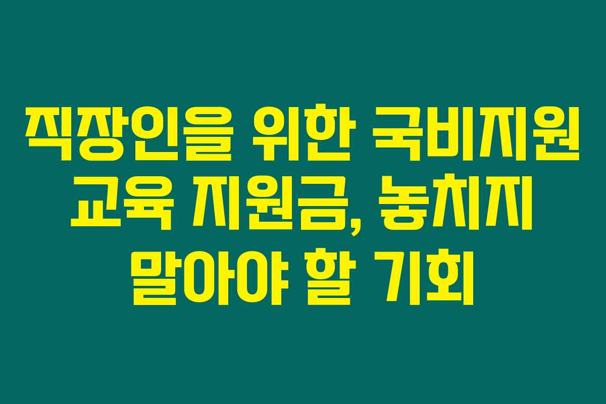 직장인들에게 제공되는 국비지원 교육 지원금에 대해 제가 직접 체크해본 바로는, 평생직장의 개념이 사라져가는 요즘, 특히 자아실현과 경력 전환을 위해 다양한 교육이 중요해졌습니다. 이 지원금을 통해 개인의 역량을 높이고 직무 변화에 도움이 되는 기회를 얻을 수 있습니다. 이에 대한 내용은 아래를 읽어보시면 더욱 자세히 알아볼 수 있습니다.