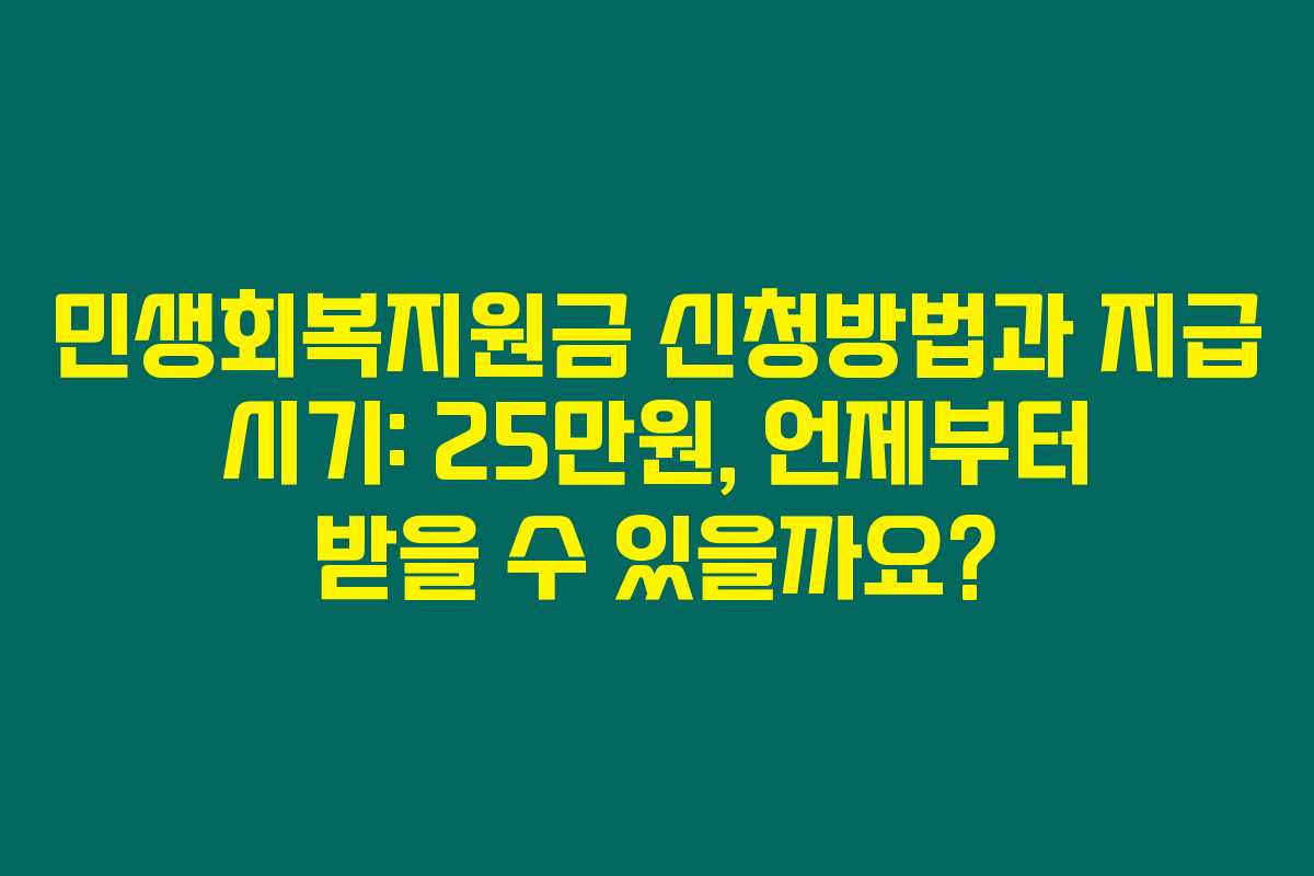 민생회복지원금 신청방법과 지급 시기: 25만원, 언제부터 받을 수 있을까요?