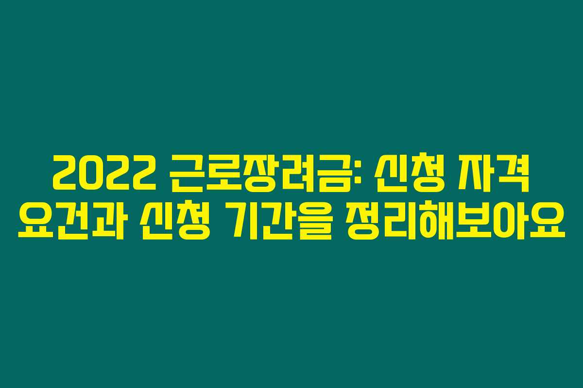 2022 근로장려금: 신청 자격 요건과 신청 기간을 정리해보아요