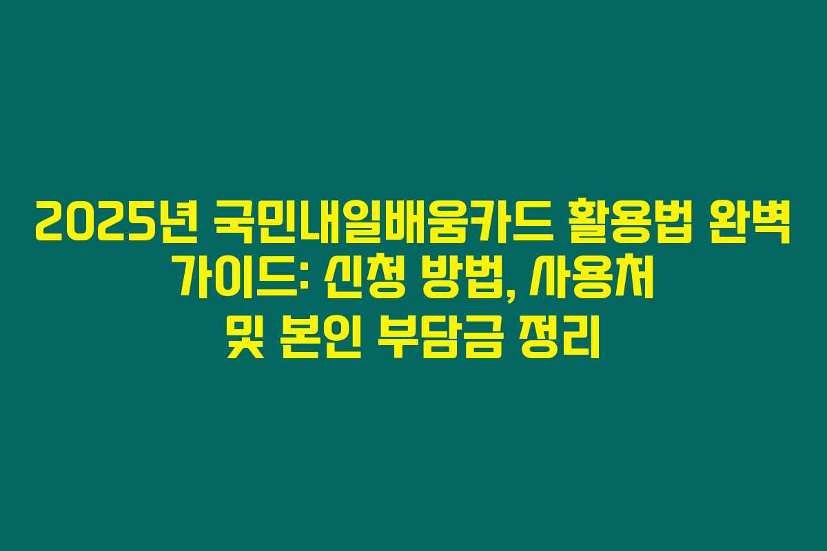 국민내일배움카드는 정부가 제공하는 직업훈련 카드로, 다양한 직군에서 취업과 직무 능력을 향상할 수 있는 큰 기회를 제공합니다. 제가 직접 경험해본 결과, 이 카드를 통해 필요한 교육을 받을 수 있다는 점에서 매우 유용하다고 생각해요. 아래를 읽어보시면 2025년 국민내일배움카드의 신청 방법과 사용처, 본인 부담금에 대해 자세히 소개해드릴게요.