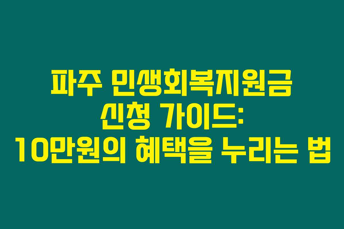 제가 직접 리서치한 바로는, 파주시는 경기 침체와 급격한 물가 상승으로 많은 시민들이 겪는 어려움을 덜기 위해 ‘민생회복지원금’을 지급한다고 해요. 이번 지원금은 1인당 10만 원씩 제공되며, 파주시민이라면 누구나 신청할 수 있습니다. 하지만 신청을 하지 않으면 지원금을 받을 수 없기 때문에, 아래를 읽어보시면 신청 방법과 사용 정보를 충분히 이해하실 수 있을 거예요.