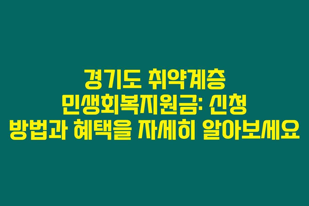경기도 취약계층 민생회복지원금: 신청 방법과 혜택을 자세히 알아보세요