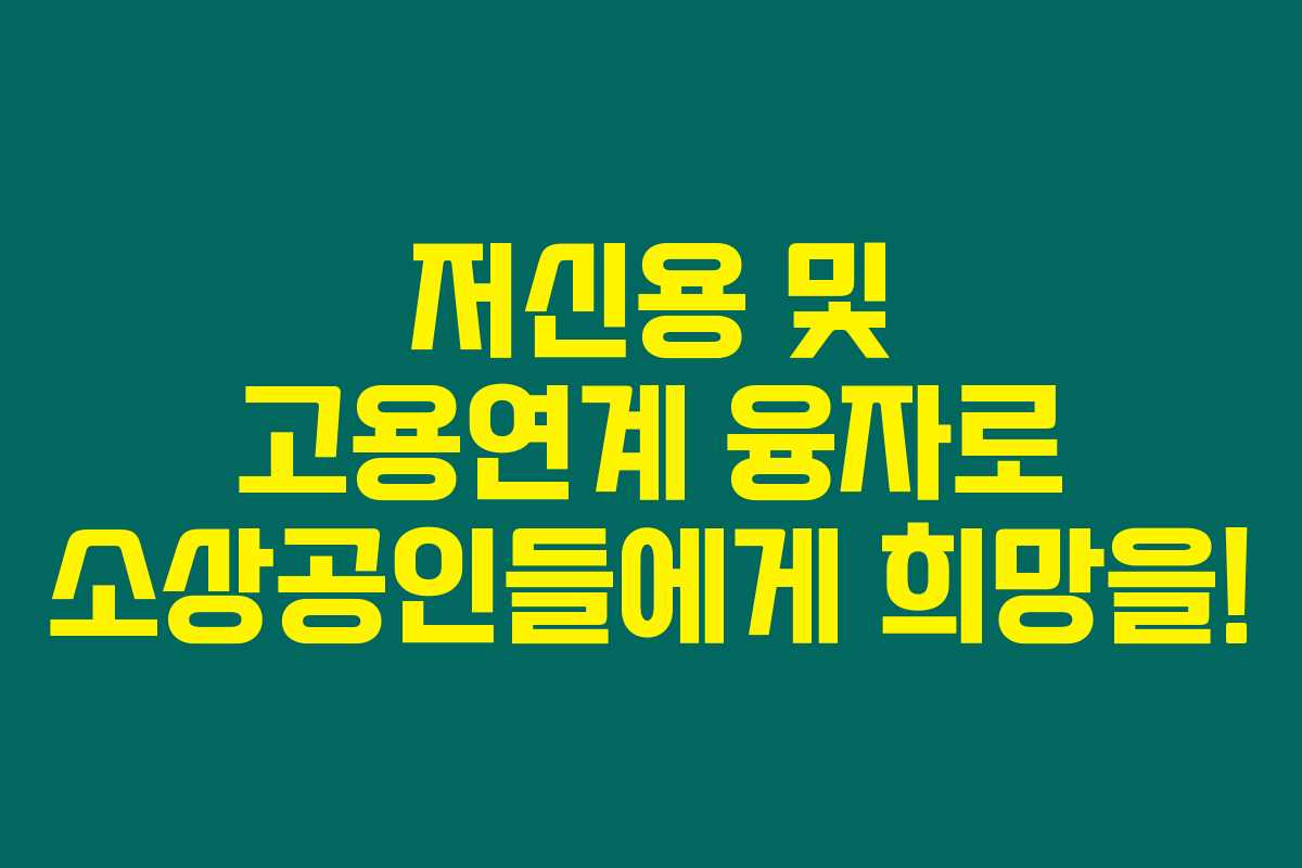 저신용 및 고용연계 융자는 각 소상공인이 어려운 상황을 극복할 수 있는 훌륭한 기회입니다. 위의 정보를 참고하여, 필요할 때 적절한 지원을 받을 수 있는 방법을 꼭 알아두세요. 코로나19 장기화 속에서도 여러분의 사업이 번창하길 진심으로 바랍니다. 궁금한 점이 있으면 언제든지 질문해 주세요!