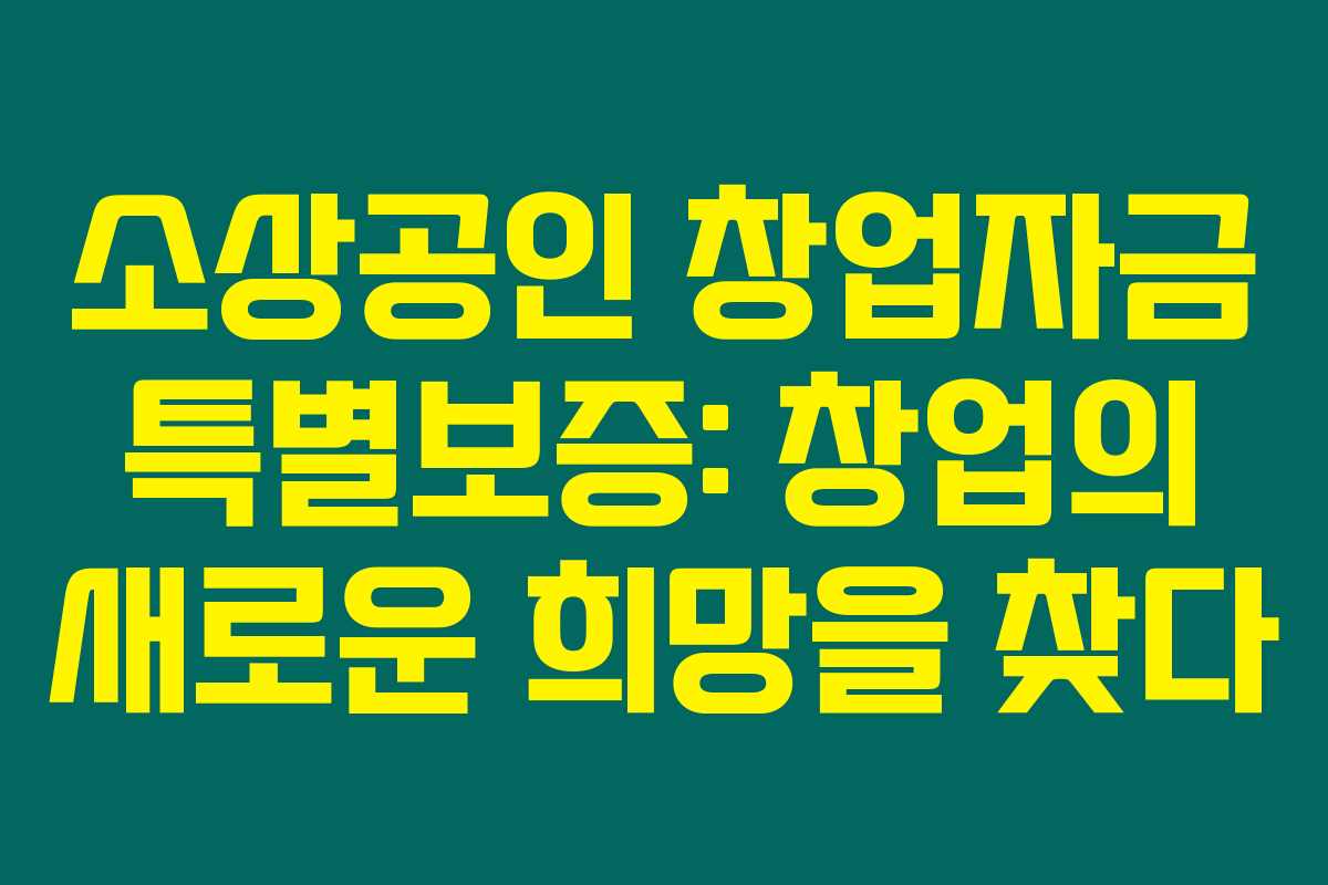 제가 리서치해본 결과로는 소상공인을 위한 창업자금 특별보증은 최근 창업에 대한 장벽을 낮추고, 많은 예비 창업자들에게 새로운 기회를 제공하고 있어요. 아래를 읽어보시면 이 특별보증이 어떤 조건으로 지원되는지, 어떻게 신청할 수 있는지에 대한 유용한 정보를 확인하실 수 있답니다.
