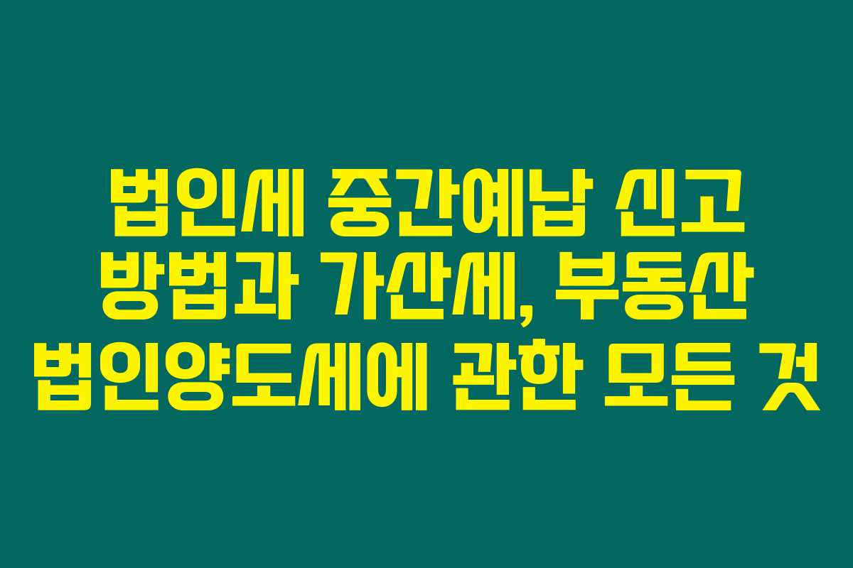 제가 직접 체크해본 결과, 법인세 중간예납과 부동산 법인양도세에 대해 알아보았습니다. 법인세 중간예납은 기업들의 세금 부담을 분산하기 위한 제도로, 이 글을 읽어보시면 구체적인 신고 및 납부방법 그리고 가산세에 대한 정보를 충분히 얻으실 수 있어요.