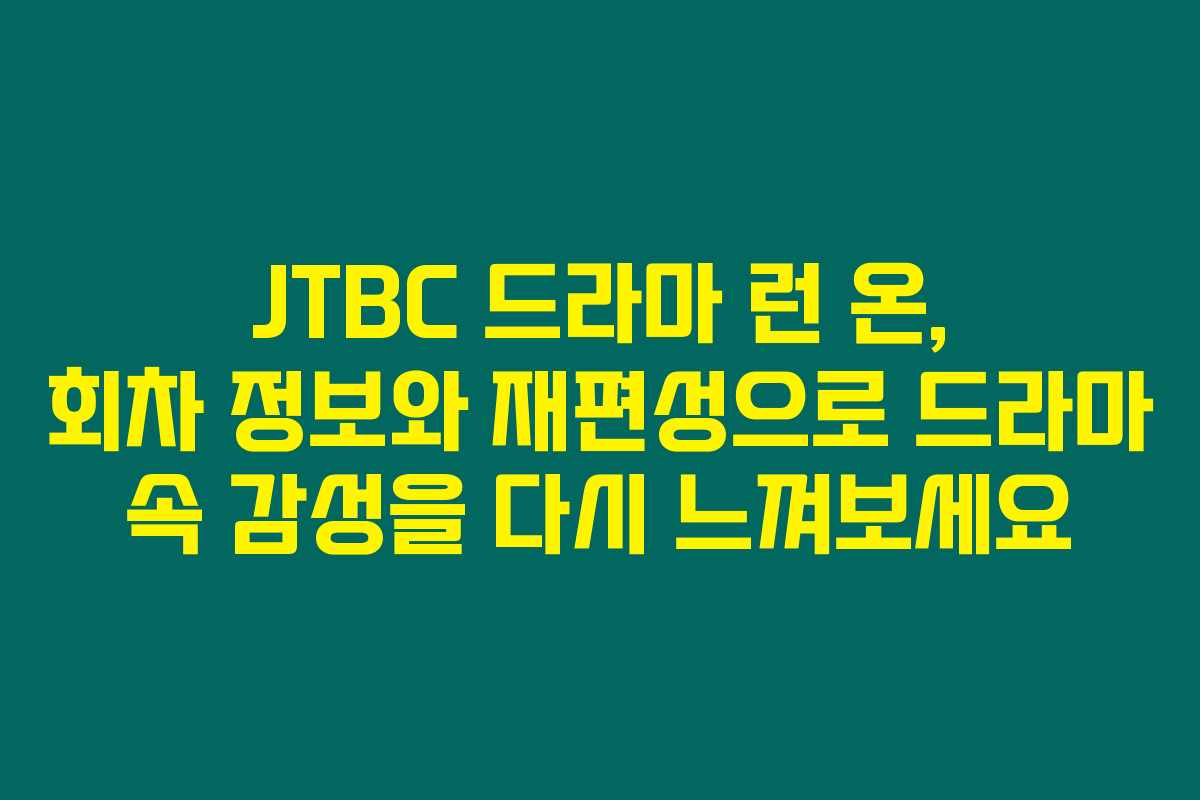 JTBC 드라마 런 온, 회차 정보와 재편성으로 드라마 속 감성을 다시 느껴보세요