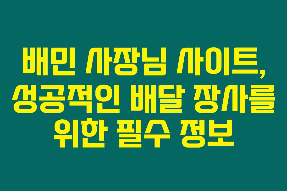 배민 사장님 사이트, 성공적인 배달 장사를 위한 필수 정보