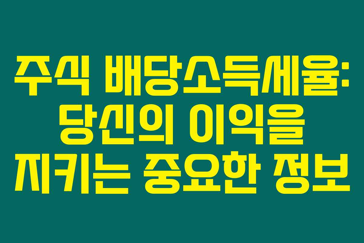 주식 배당금은 투자자의 고마운 수익이지만, 그에 따른 세금 관련 알고 계셔야 해요. 이 정보를 제대로 알고 활용하신다면, 세금을 가장 최소화하면서 투자 성과도 극대화할 수 있을 거예요.