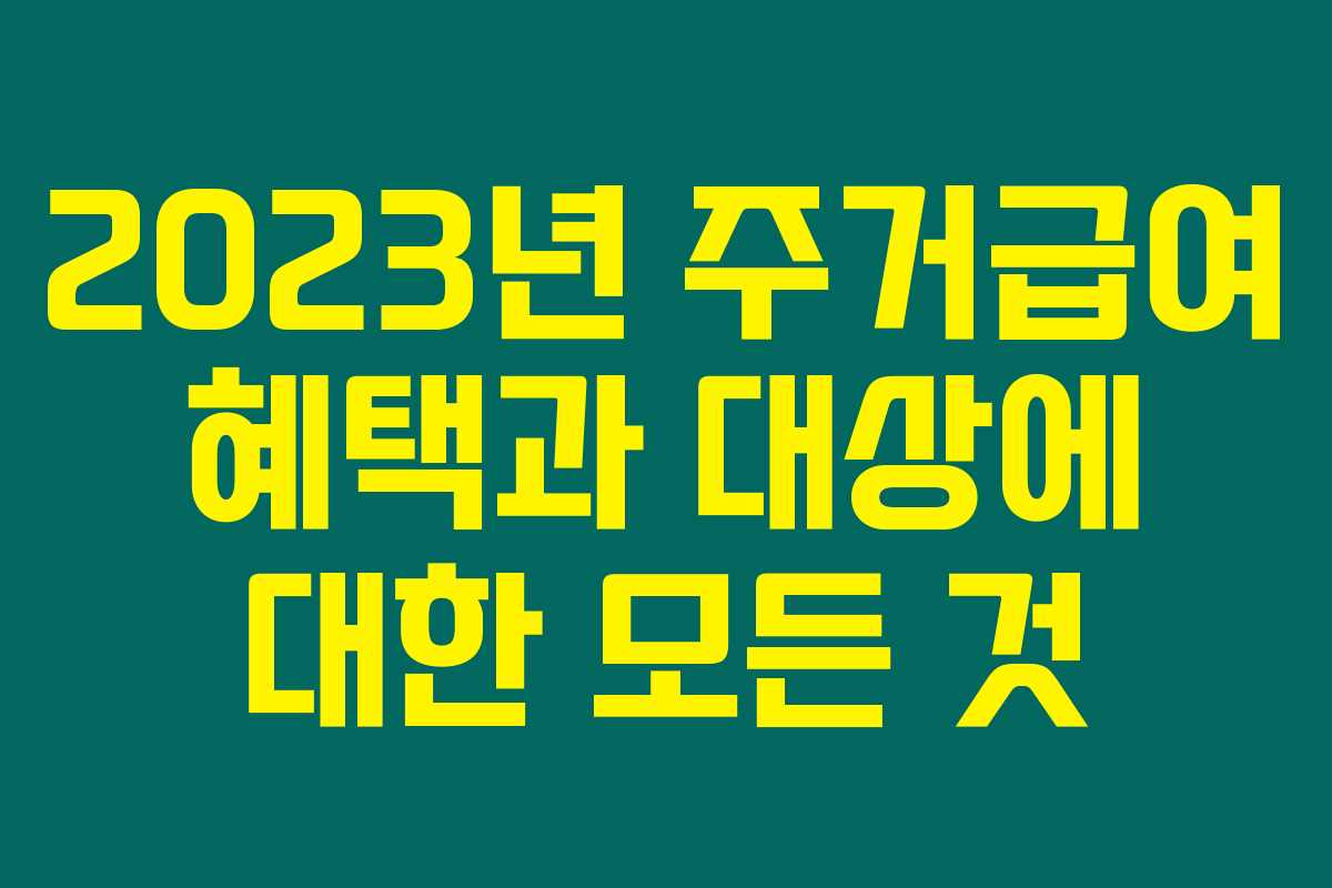 2023년 주거급여에 대한 내용을 알아보면서 제가 직접 확인해본 결과로는, 주거급여 제도는 저소득층 가구를 위한 주거 문제 해결을 위한 복지 제도로 중요한 역할을 하고 있더라고요. 이 글에서는 2023년의 주거급여 대상 및 혜택에 대해 상세히 알아보겠습니다. 아마 이 내용을 통해 주거급여에 대해 많은 도움이 될 거라 생각해요.