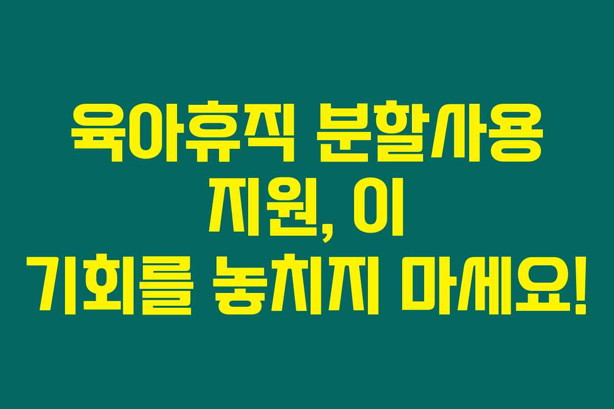 육아휴직 분할사용 지원, 이 기회를 놓치지 마세요!