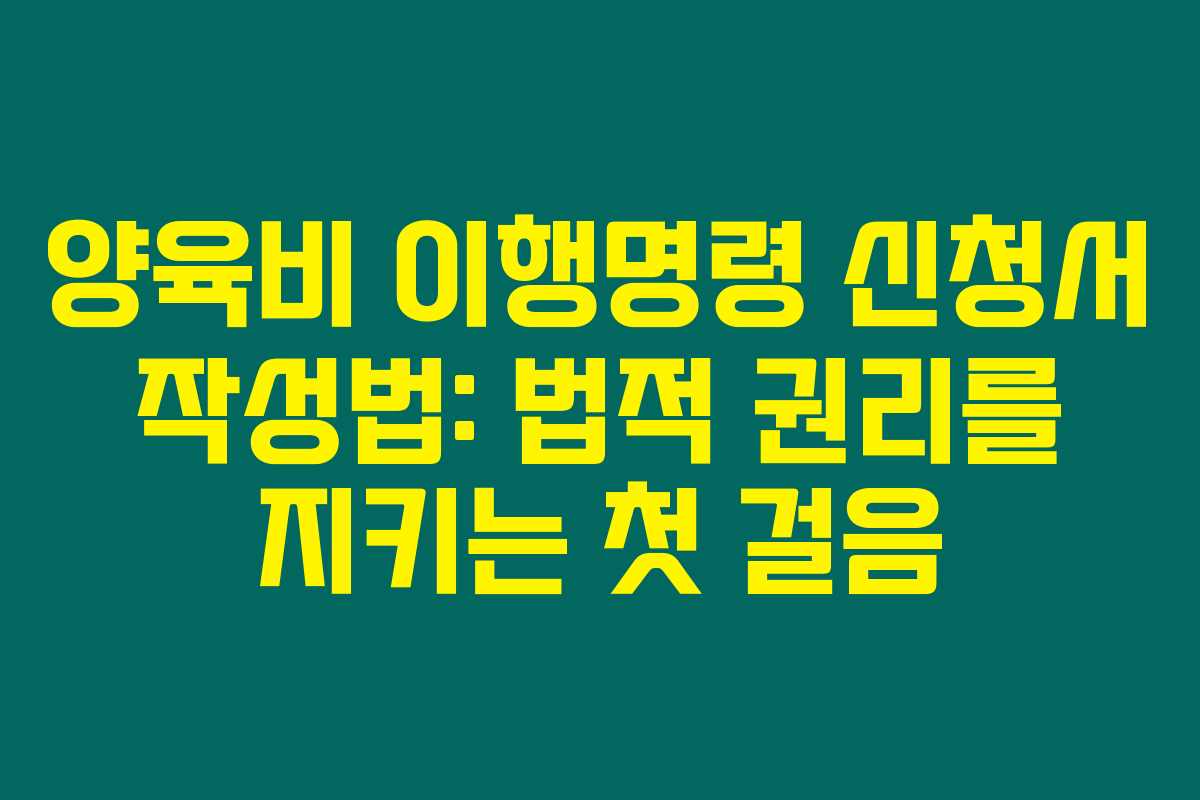 제가 직접 경험해본 바로는, 양육비 이행명령 신청서는 자녀의 복지와 권리를 보호하기 위해 꼭 필요한 중요한 문서입니다. 양육비 문제로 고민하고 계신 분들을 위해 이 글을 준비하였습니다. 아래를 읽어보시면 양육비 이행명령 신청서의 작성법을 잘 이해하고, 법적 절차를 통해 자신의 권리를 보호할 수 있는 방법을 알게 되실 겁니다.