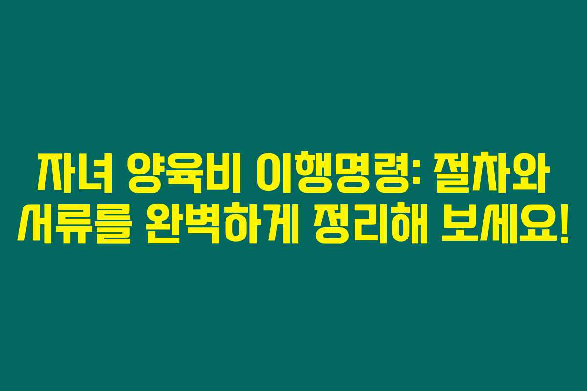 자녀 양육비 이행명령은 단순히 금전적 지원을 받기 위한 절차가 아닙니다. 아이의 권리를 보호하고 건강한 성장 환경을 마련하는 중요한 출발점이에요. 절차가 복잡하지만, 제가 소개한 정보와 팁을 잘 활용하시면 수월하게 진행할 수 있답니다. 하나의 단계라도 느껴지면, 주저하지 말고 전문가의 도움을 받아주세요. 아이를 위한 그 한 걸음이, 결국 세상에서 가장 큰 힘이 될 거랍니다.