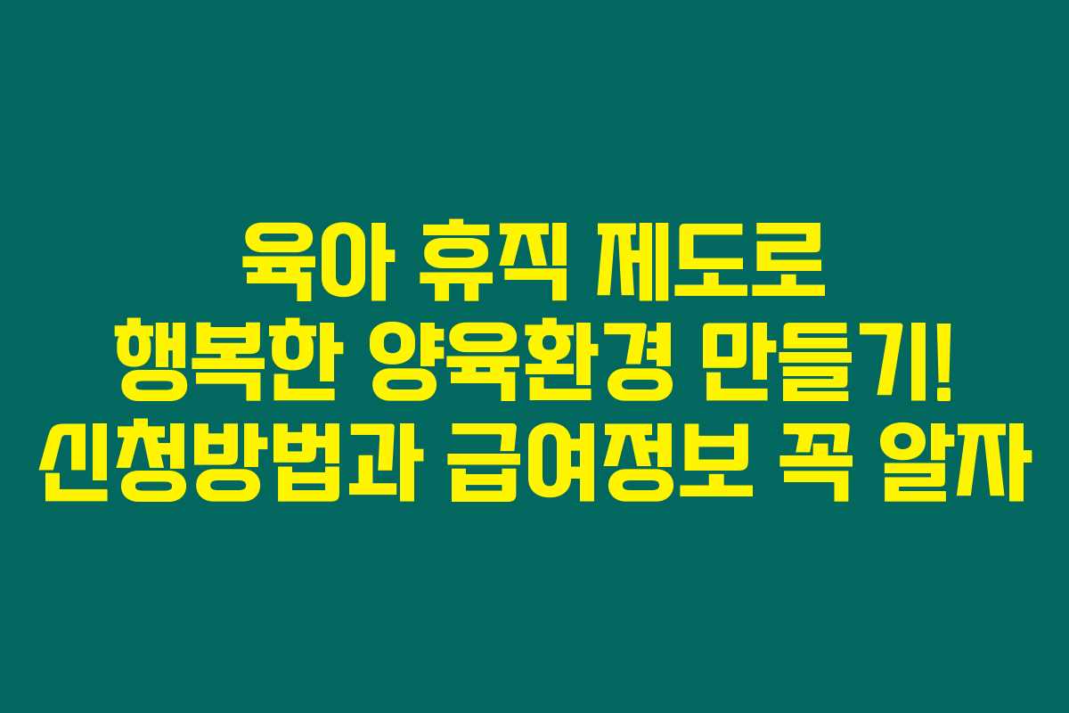 제가 직접 확인해본 결과로는, 육아 휴직 제도는 자녀 양육을 보장하는 매우 중요한 제도입니다. 이 제도를 통해 부모가 자녀와 함께하는 시간을 가질 수 있으며, 다양한 혜택도 주어진답니다. 아래를 읽어보시면 육아 휴직의 조건, 신청 방법, 급여 정보에 대해 자세히 안내드릴게요.