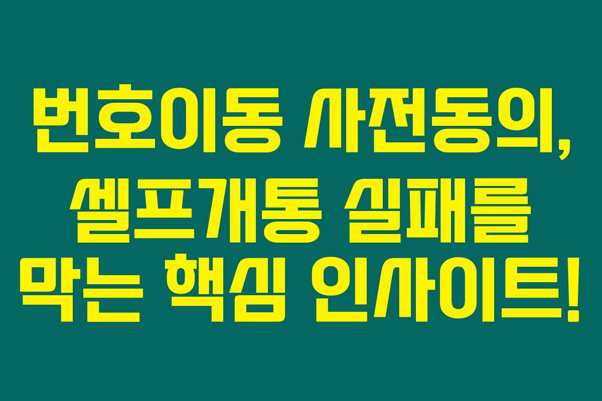 제가 직접 경험해본 결과로는, 번호이동을 하면서 셀프개통에 실패할 때, 사전동의가 필수적이라는 것을 알게 되었어요. 통신사의 최종 승인 절차 중 하나인 사전동의 문자가 오지 않는 경우가 많아서 불편함을 느낀 적이 있는데요. 아래를 읽어보시면 이러한 문제를 해결하는 방법을 더 자세히 알아보실 수 있어요.