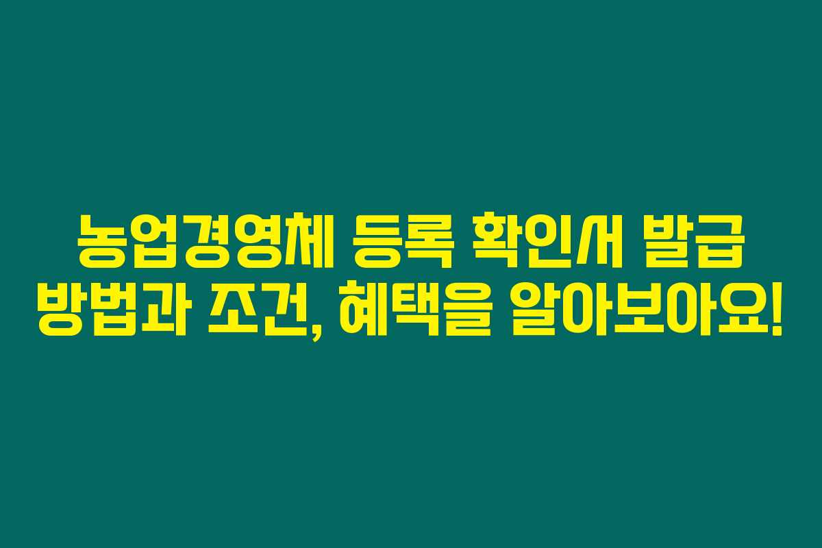 등록과 함께 다양한 혜택을 받을 수 있는 농업경영체 등록 확인서 발급 방법과 조건에 대해 알아보았습니다. 농어촌에서 일하시는 분들에게 정말 유용한 제도이지요! 궁금한 점이 생기면 언제든 질문해 주세요.