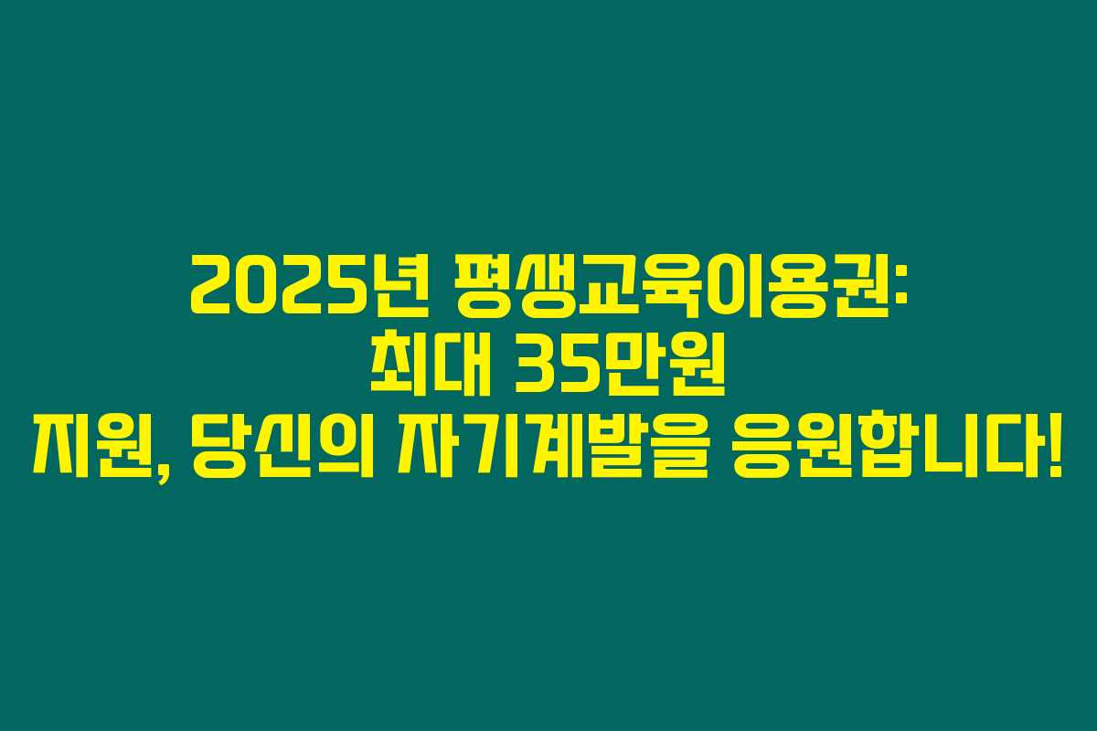 자기계발을 쉽게 시작할 수 있는 기회를 놓치지 마세요. 2025년 평생교육이용권을 통해 새로운 강좌에 도전하여 실력을 쌓고, 더 나은 미래를 만들어보세요! 지금 바로 신청 방법과 사용처를 확인하고, 원하는 교육을 자유롭게 누려보세요!