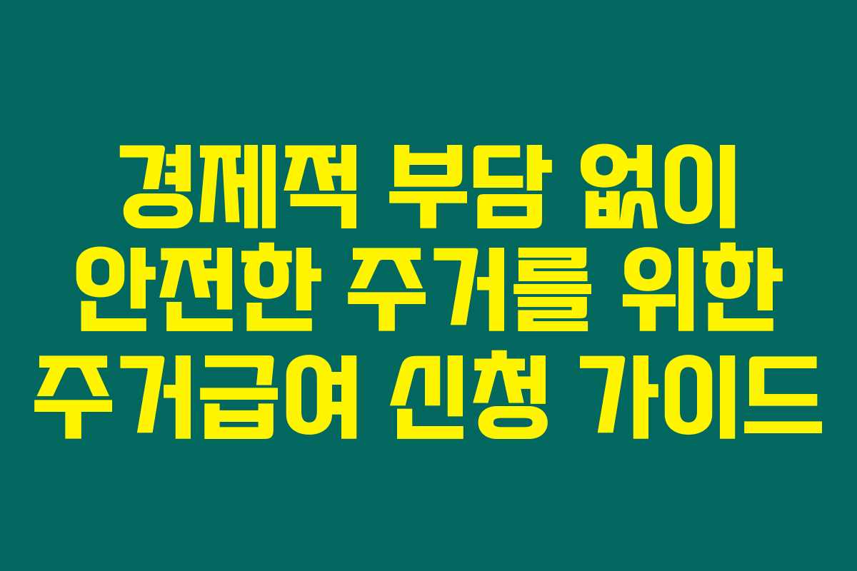경제적 부담 없이 안전한 주거를 위한 주거급여 신청 가이드