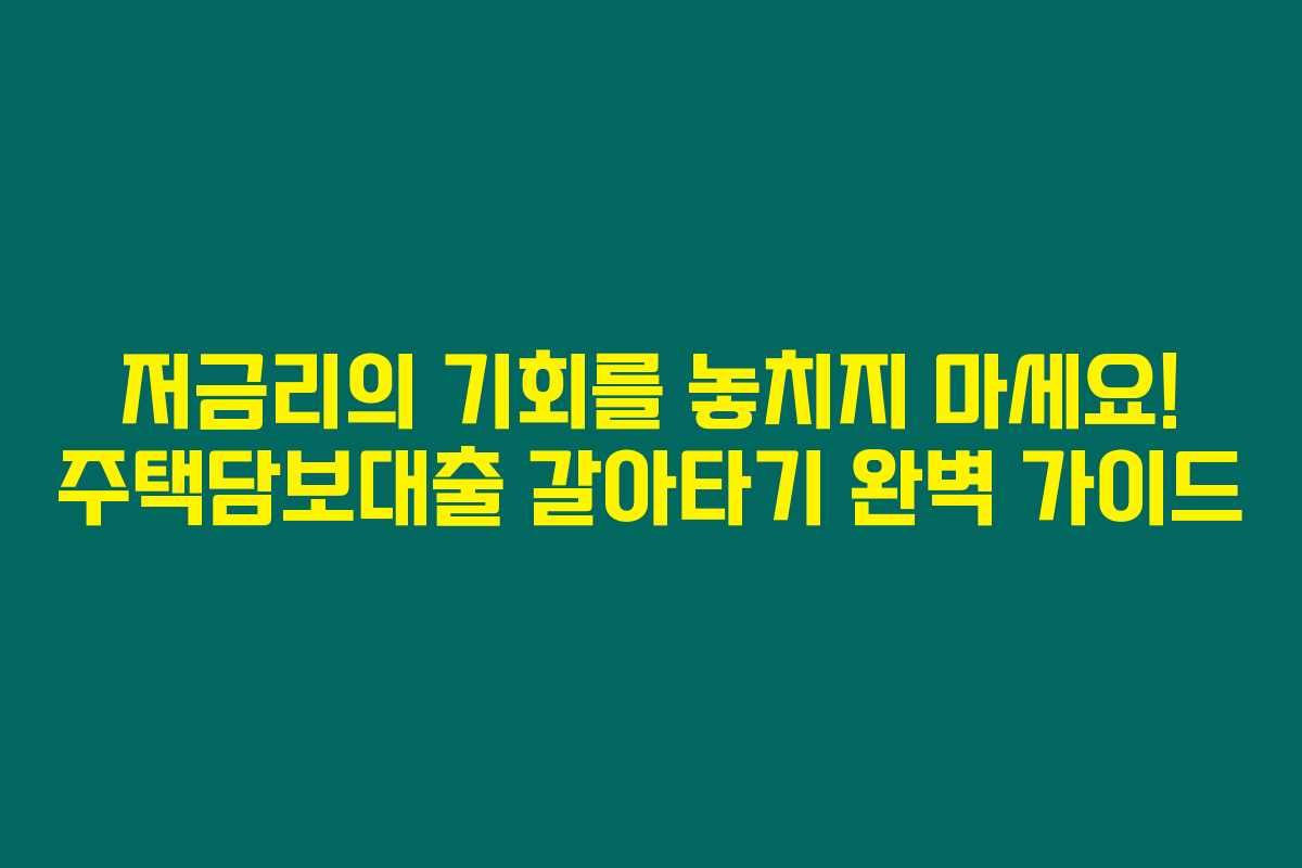 제가 직접 경험해본 결과로는, 주택담보대출을 갈아타는 것이 더 낮은 금리를 통해 장기적으로 매달 부담을 줄일 수 있는 좋은 방법인 것 같아요. 최근에 주택담보대출 갈아타기가 가능한 여러 조건과 주의사항을 정리해봤으니, 아래를 읽어보시면 유용한 정보가 가득하답니다.