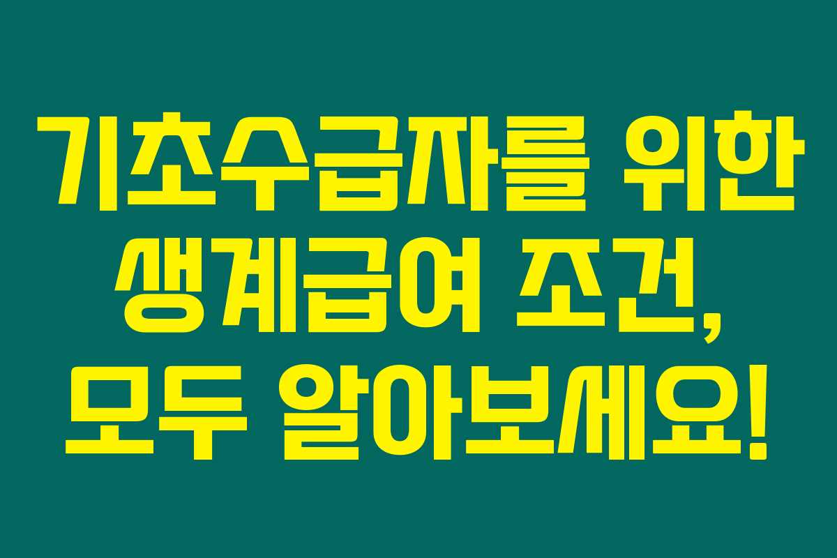 제가 직접 알아본 바로는, 기초생활수급자에 대한 생계급여는 경제적으로 어려움을 겪는 가구에게 꼭 필요한 지원입니다. 생계급여를 받을 수 있는 조건과 필요 사항에 대해 알아보면, 보다 나은 삶을 위해 어떻게 신청할 수 있는지 이해할 수 있을 거예요. 아래를 읽어보시면 기초생활수급자에 대해 더 깊이 이해하고, 생계급여 조건을 충족하는 방법을 알게 되실 겁니다.