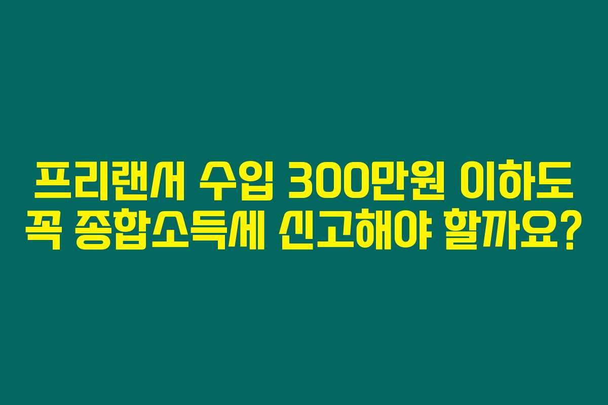 제가 직접 경험해본 결과, 프리랜서로 일하면서 수입이 300만원 이하인 경우에도 종합소득세 신고는 필수입니다. 이를 통해 세금 부담을 줄일 수 있으며, 나중에 소득 증빙이 필요할 때 유리하게 작용합니다. 글의 내용을 통해 이 문제를 깊이 있게 이해해보도록 할게요.